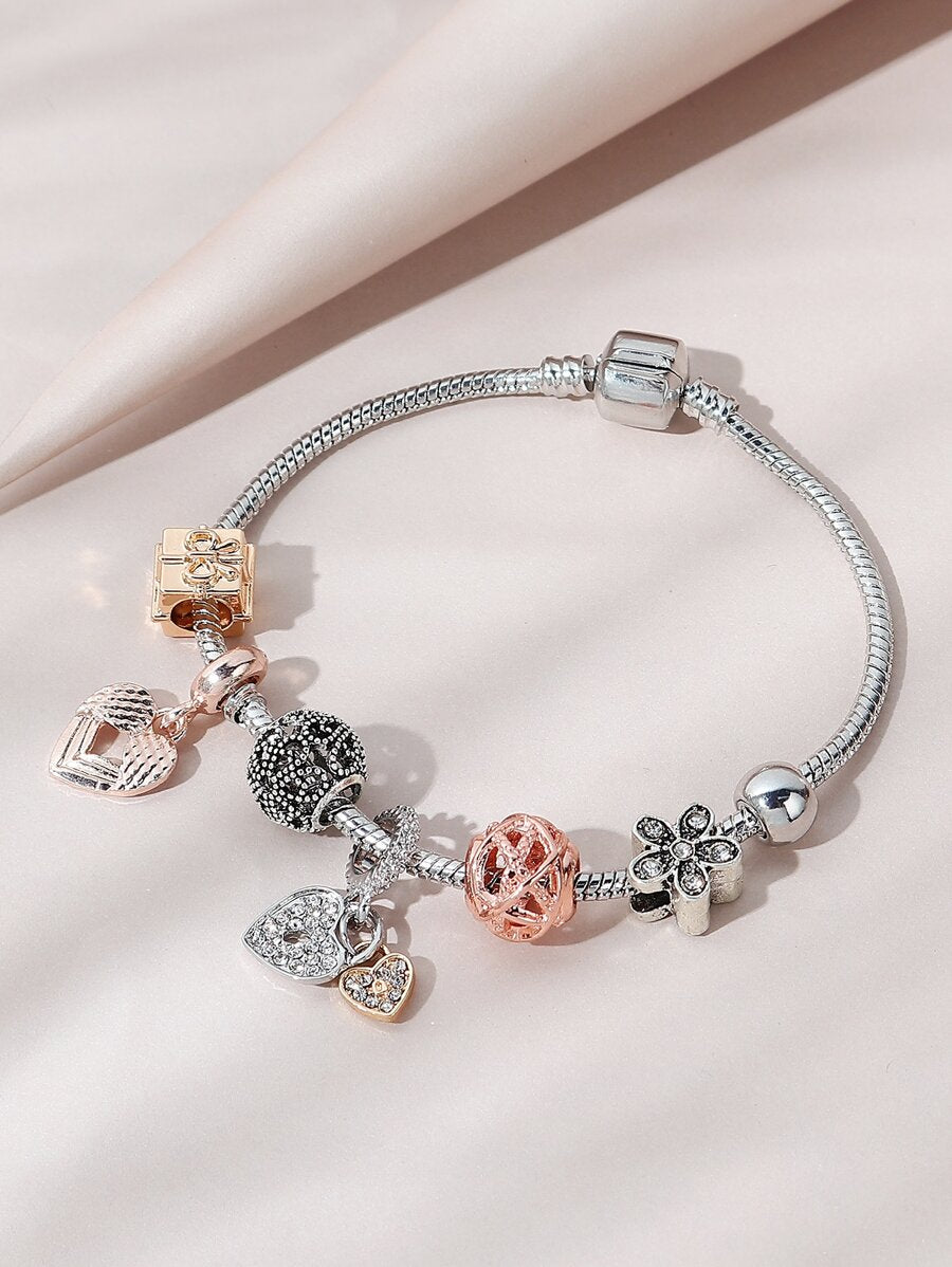 This Rhinestone Decor heart charm bracelet has rhinestones in various colors and designs. They are made of high quality materials and can be used as fashion accessories or gifts.